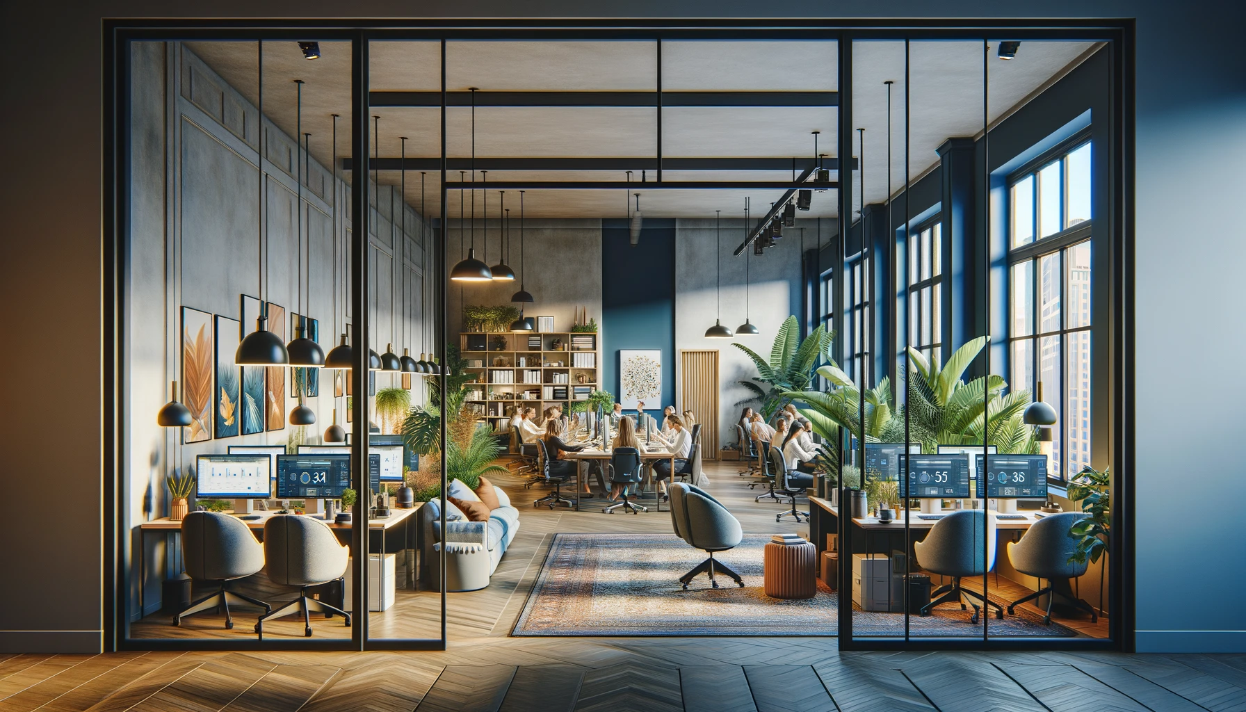 https://320designs.com/wp-content/uploads/2024/06/DALL%C2%B7E-2024-05-26-17.35.22-A-view-from-inside-an-office-looking-through-large-clear-office-doors-into-another-section-of-the-office.-The-space-is-ultra-realistic-and-homey-with-.webp